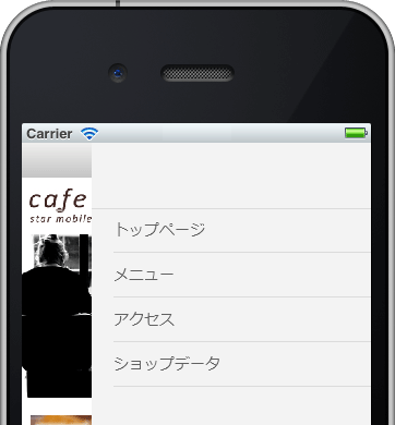 作成したページ名が、メニューボタンとして表示されます。クリックすることで各ページへ移動します。