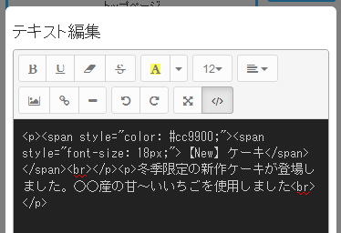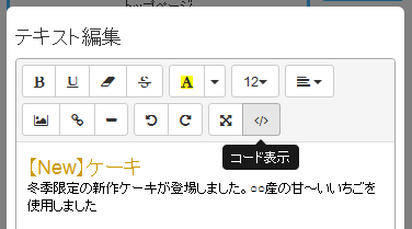 よりデザインにこだわりたい方のために、コード(HTML)編集機能をご用意しています。コード編集からデザイン編集への切り替えはボタンひとつで行えます。